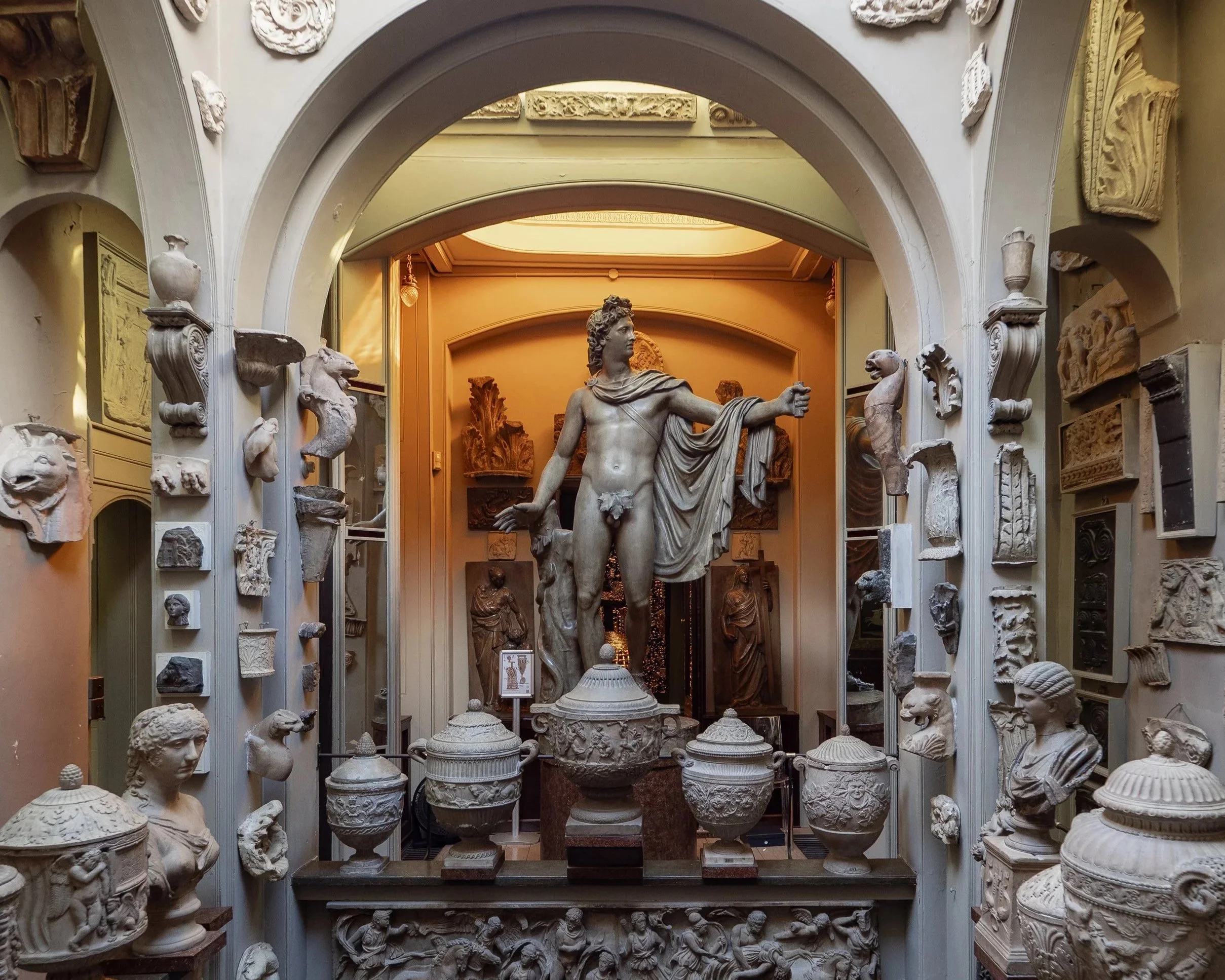 Do not leave without going upstairs to the Model Room. Soane was obsessed with building scale models of ancient structures to teach his students. The room is dominated by a massive cork model of the ruins of Pompeii, which allows you to see the layout of the Roman city as it looked in the 1820s. There are also exquisite plaster models of his own buildings, including the Bank of England.