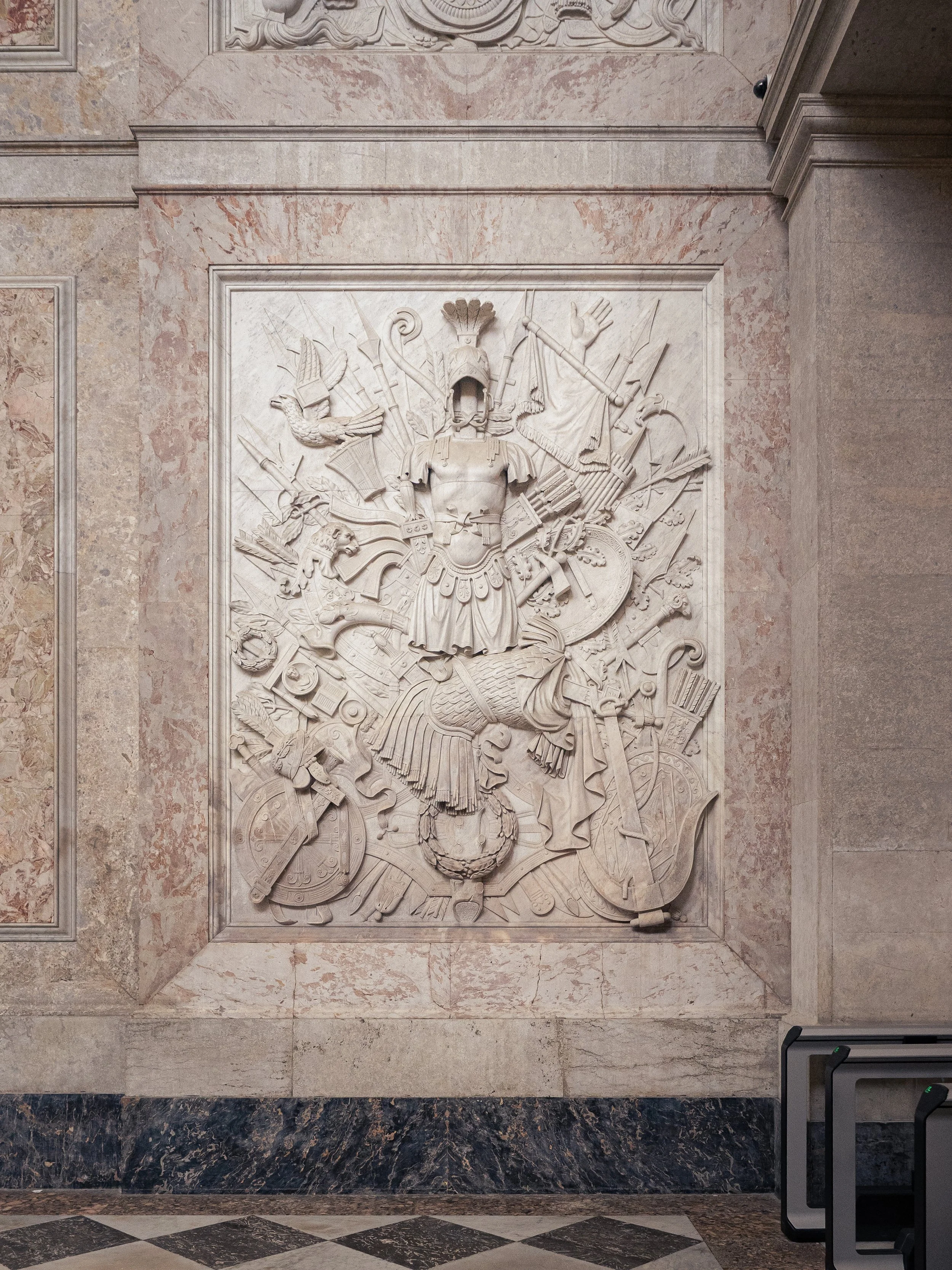 The white is classic Carrara, but the pink is a rare local stone called Breccia di Vitulano and Portasanta. The effect is warm, vibrant, and incredibly expensive looking. It feels less like a government building and more like the inside of a very elaborate jewelry box. Every surface reflects the light from the enormous windows to create an atmosphere of opulent grandeur.