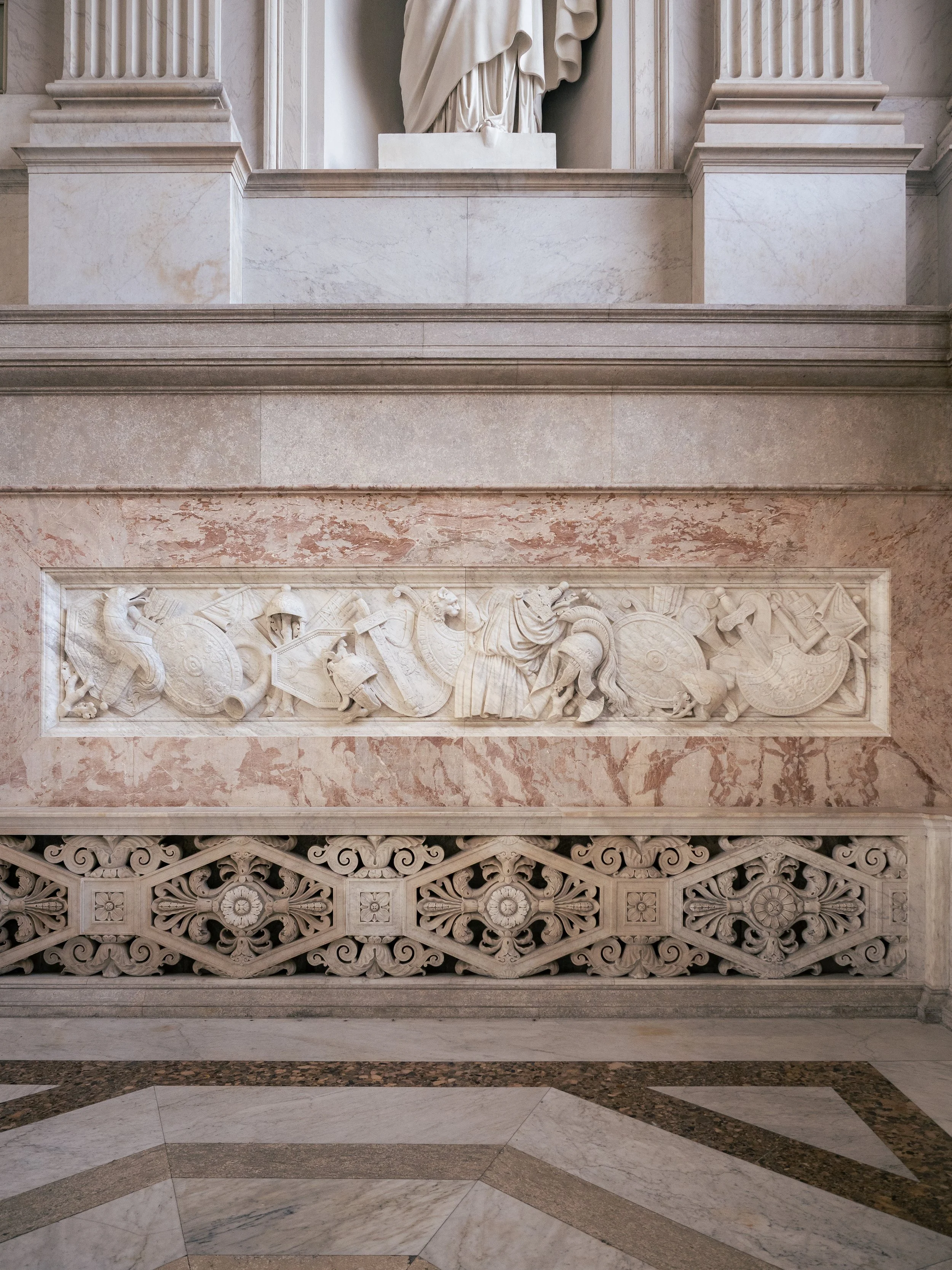 The first thing that hits you is the colour. This isn't the cold, white neoclassical marble of London or Berlin. This is Neapolitan passion in stone. The entire space glows with a rosy hue that changes softly depending on the angle of the sun. Is it pink, is it purple? I don’t know.